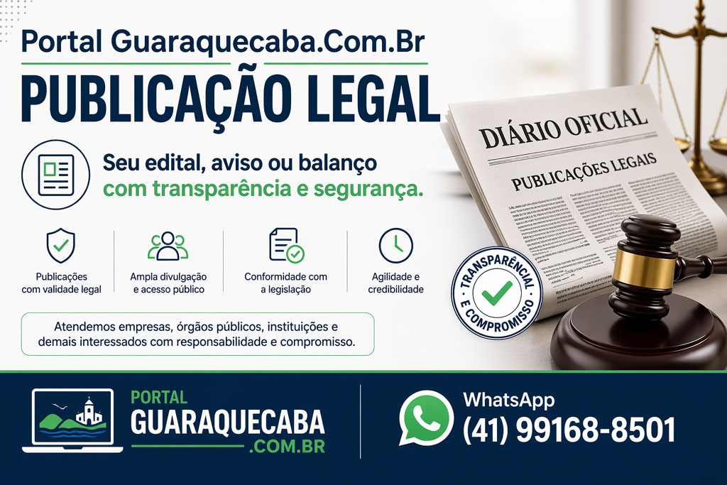 Ao contratar o serviço de Publicidade Legal do Portal Guaraquecaba.Com.Br o anunciante contará com a agilidade no atendimento e na publicações de anúncios, apoio técnico qualificado, desde a contratação, publicação até o faturamento.